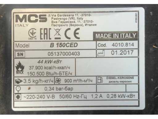 mobil; mâner de împingere; pe motorină; rezervor de combustibil subiacent; consum 3,5 litri / oră; debit volumic 900 m3/oră; fără termostat, stare de funcționare;