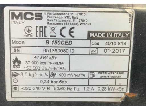 mobil; mâner de împingere; pe motorină; rezervor de combustibil subiacent; consum 3,5 litri / oră; debit volumic 900 m3/oră; fără termostat, stare de funcționare;