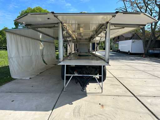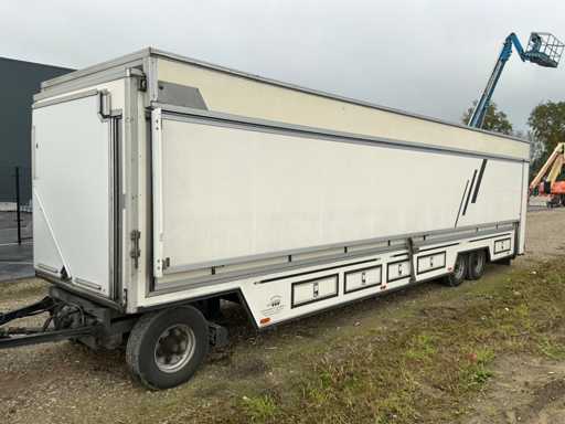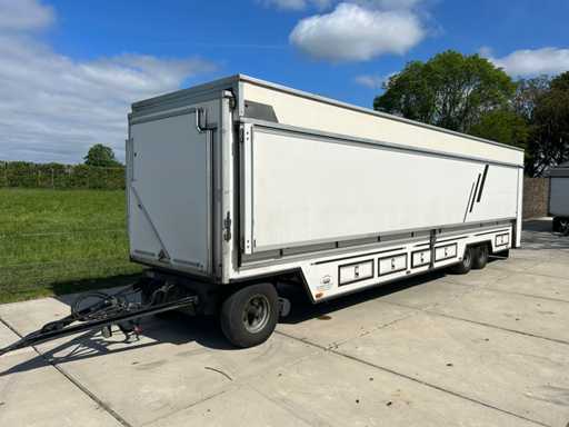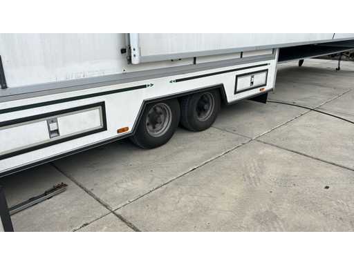 Remorci Masa maximă 6600 kg, lungimea caroseriei aproximativ 8,9 metri, an de fabricație 2000, lățime 2,1 metri., iveco zilnic an de construcție 2018, citire kilometraj 288952km, echipat cu transmisie automată, tahograf, roată dublă spate, compresor de aer pentru sistemul de frânare a remorcii, greutate maximă de remorcare 6500kg, ansamblu masa maximă iveco 10.000kg.