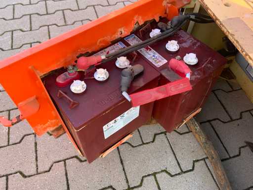 Înălțimea podelei platformei 3660 mm; încărcător intern de baterie 230 Volți; controlul cuștii; Platformă de conectare la curent de 230 volți; înălțime de transport aproximativ 1750 mm; nu funcționează;