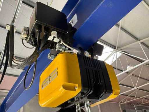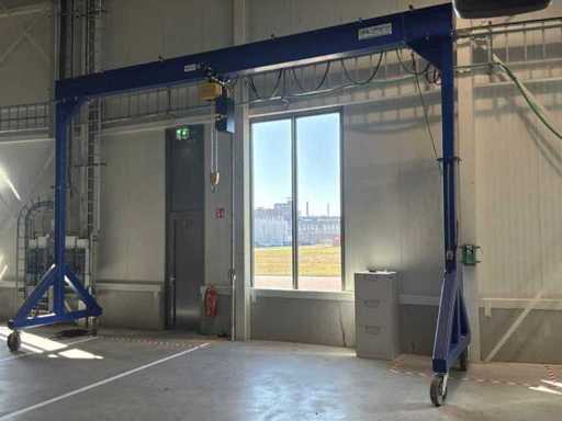 Cu 4x roți rote. Notă: macaraua portică trebuie demontată pentru a fi scoasă din clădire