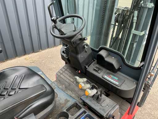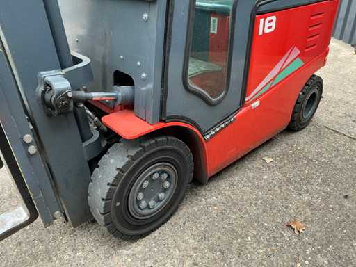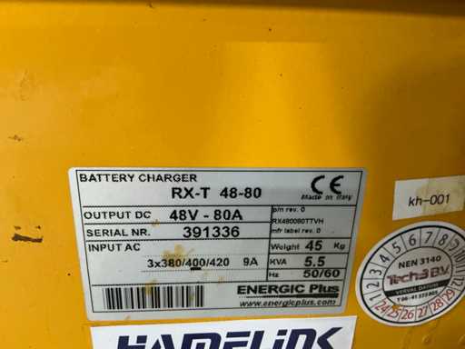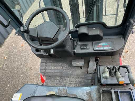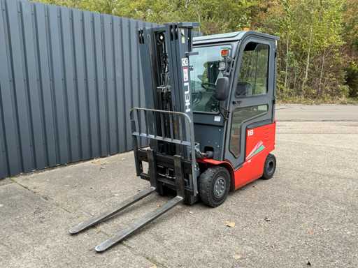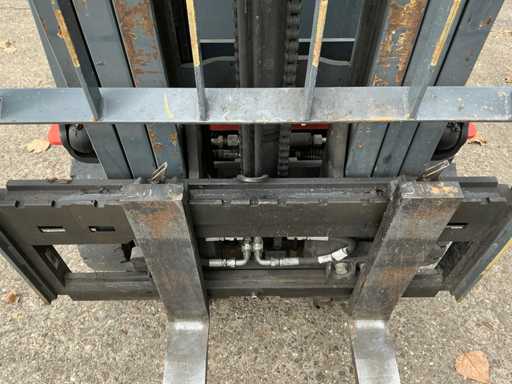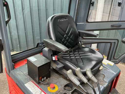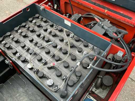 Echipat cu: acumulator de 48V, încărcător extern de baterii, cabină cu 2 uși, încălzitor, deplasare laterală, catarg triplex, lumini de lucru, baliză, anvelope solide.