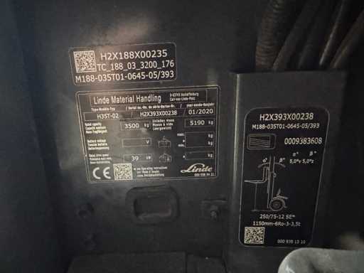 2020 Linde H35T 3.500kg 3.+4 supapă 177cm Reglator de furcă Triplex 645cm Stivuitor pe gaz