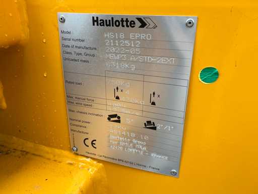 2022 Haulotte HS18EPRO Platformă aeriană 18 metri