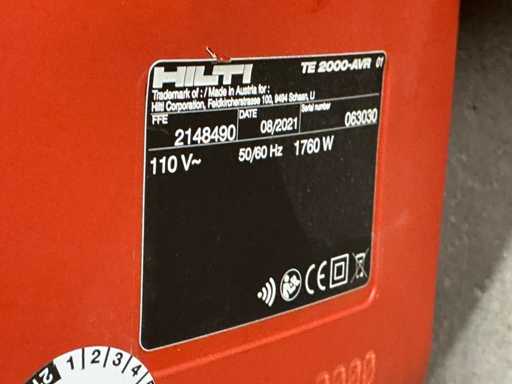 2022 Hilti TE 2000-AVR Întrerupător 15kg TE-S 110V (Marea Britanie)