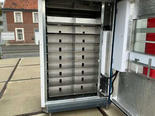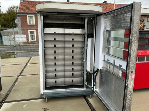 Deze volledig functionerende automatische verkoopsautomaat verkeert in goede staat en is klaar voor direct gebruik. Dankzij het robuuste ontwerp en slimme technische features is dit de ideale oplossing voor het 24/7 aanbieden van gekoelde producten op een gebruiksvriendelijke manier.