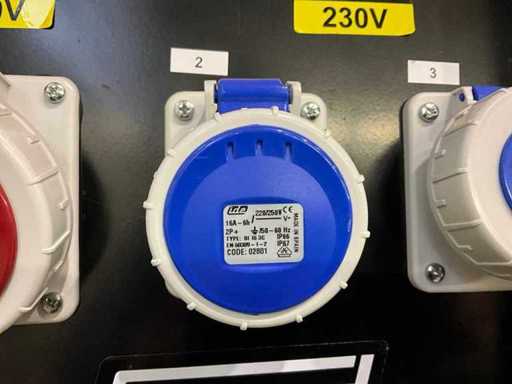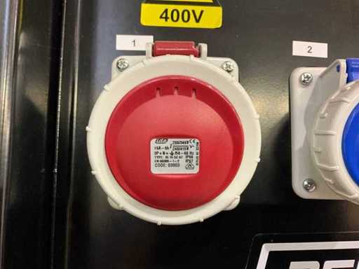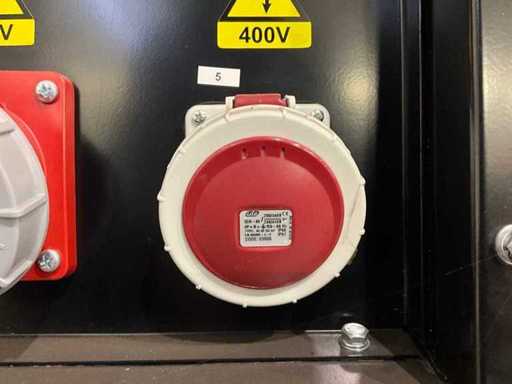 AC output: 1 x 400V 32A, 1 x 400V 16A, 1 x Schuko 16A, 1 x Schuko 230V;