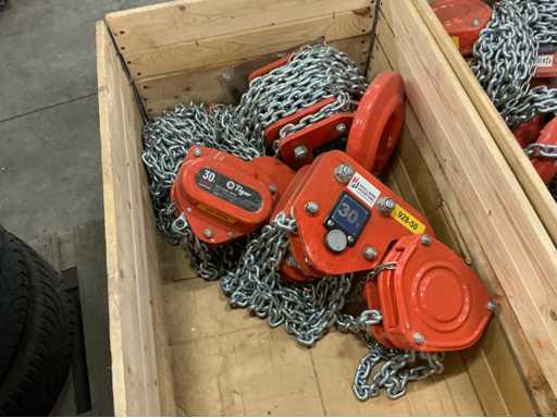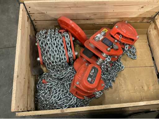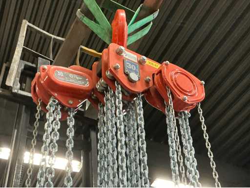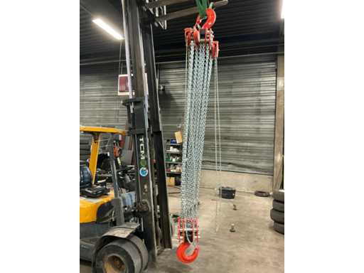 3-string version, heavy industrial chain hoist. Hand-operated, suitable for fixed installation on overhead or gantry crane.