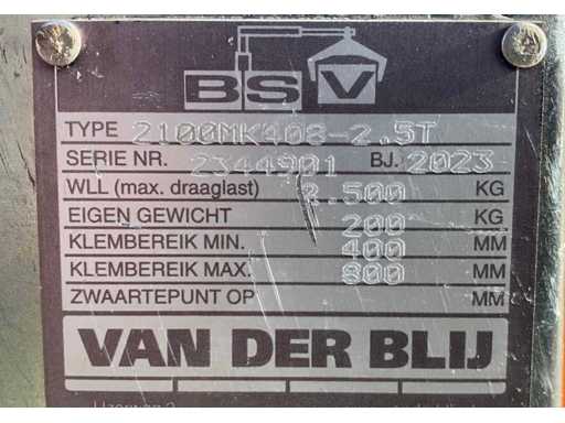 2023 Van der Blij 2100MK408-2,5 BSV Clemă mecanică de bloc