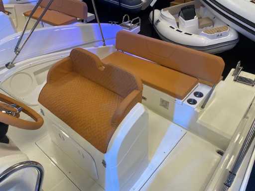 Perne; pat solar; scara de înot; pompă de sentină; pregătirea tăvii de rufe; rezervor de apă; lumini de navigație; troliș electric; top bimini; direcție hidraulică. Motor exterior de până la 250 CP