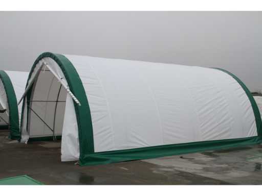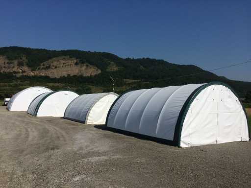 Dotat cu cort/adăpost de depozitare; sistem de ferme/tub de circumferință; Galvanizat; 2 uși; spațiu între arcade 183 cm; material 420 grame capac PVC; culoare albă; inclusiv manualul de asamblare; nefolosit în carcasă metalică