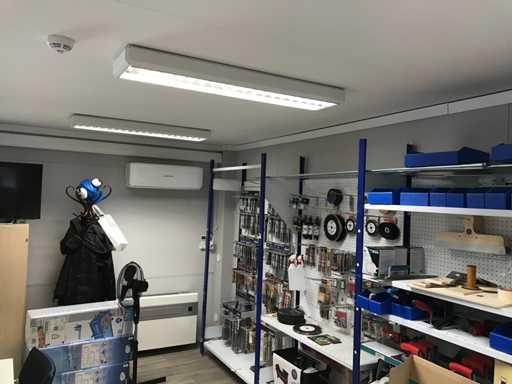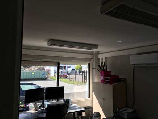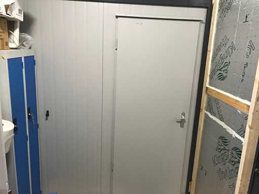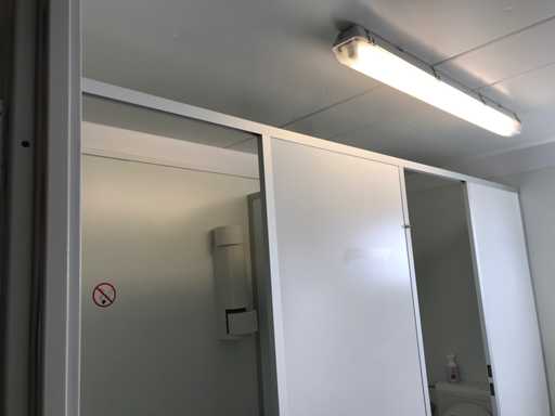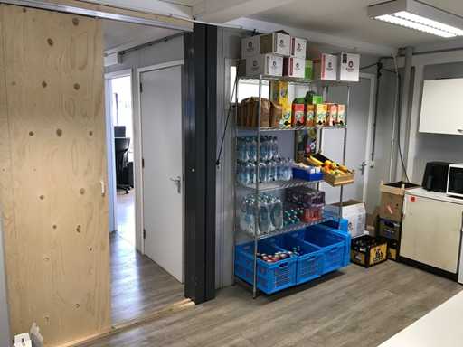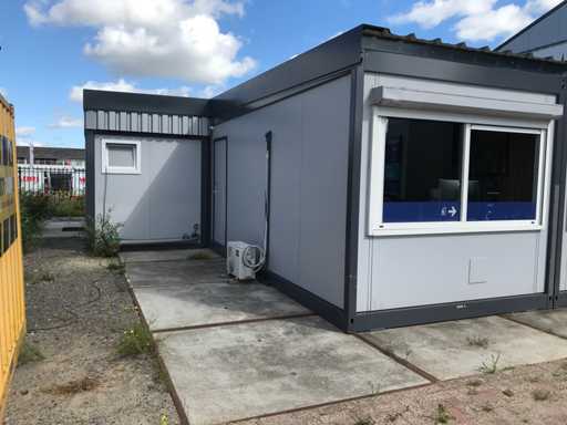 Unitate de birou demontabilă formată din; 8 unități de 3x6 metri și 1 unitate de toaletă de 3x3 metri cu 2x toaletă și 2x bideu; construcția acoperișului cu panouri sandwich; 3x3 metri cu izolație și tableplanșe profilate;