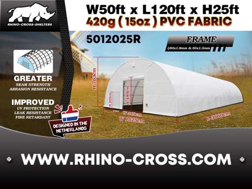 2025 Rhino-Cross-Shelter 5012025R 36,6x15,25x7,625 m Cort de depozitare / Adăpost de depozitare