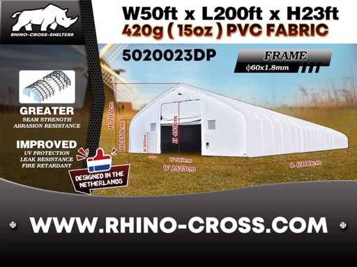 2025 Rhino-Cross-Shelter 5020023DP 61x15,25x7,015 m Cort de depozitare / Adăpost de depozitare