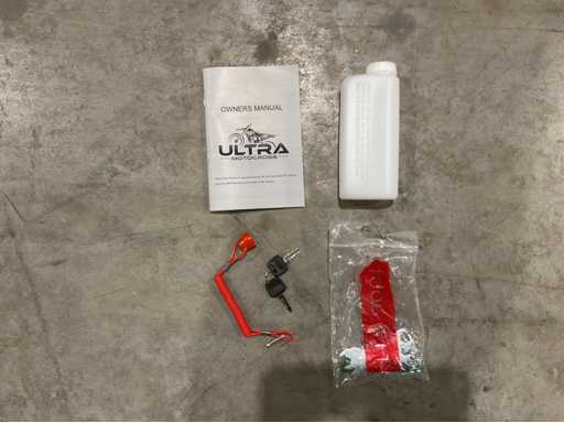 Echipat cu motor pe benzină de 49cc; 2 timpi; Pornire cu tragere; 3 viteze diferite; întrerupător de oprire; dimensiunea anvelopei 6" inch; 2 chei; Neutilizat în cutie (dimensiuni transport 100x55x45 cm)