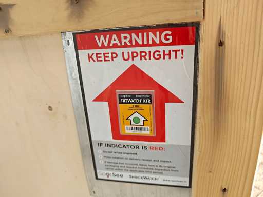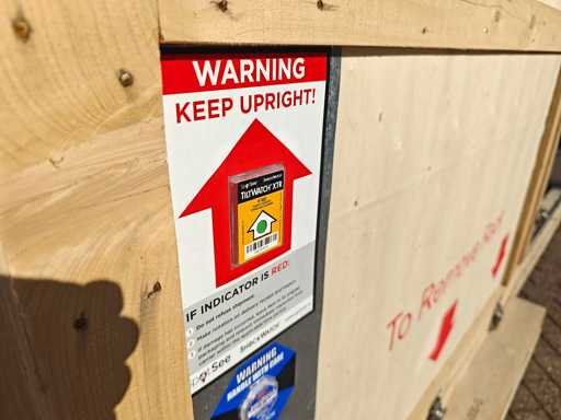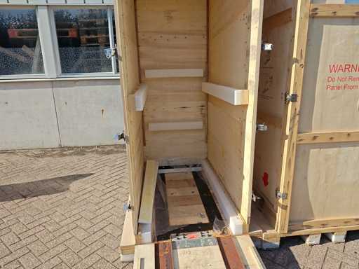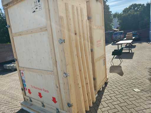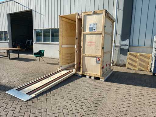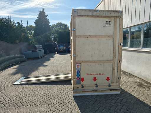 Lăzi de transport din lemn protejate și pot fi conduse cu transpaleți. Lungime 1450mm Lățime 880mm Înălțime 2500mm, cu indicatoare de vibrații
