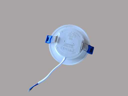 luminous flux 300 lumens, light color warm white 3000K, radiation angle 120°, product color white, PS diffuser, flame retardant plastic dimensions Ø 93 x 26 mm, installation diameter ø 64mm, material, mounting set not included, lifespan 25,000 hours, voltage 220-240V, SKU 1072