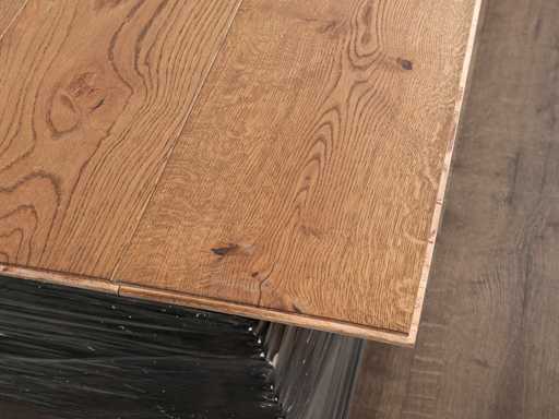 Easy to lay due to tongue and groove system, suitable for all types of floor and cooling heaters, contains short and long planks, floor is made of European oak wood, ready-made treated, note floor is unpackaged contains loose planks, thickness 15 mm, top layer 3 mm, 1 pallet a 54 m2