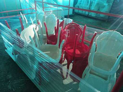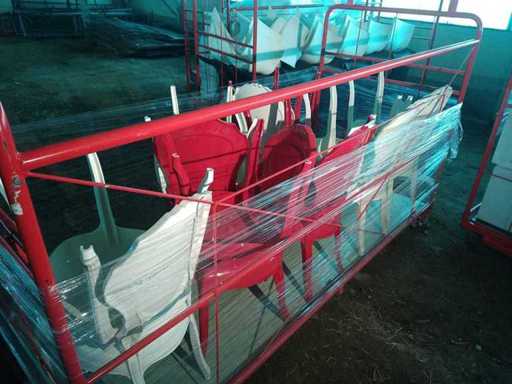 Cărucior industrial 2620*1100*1550 conținând 6 scaune roșii 1900, 8 scaune albe 1900