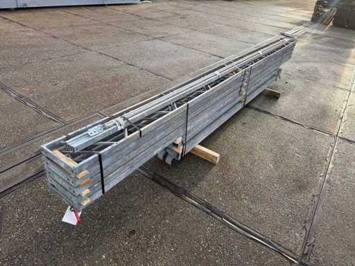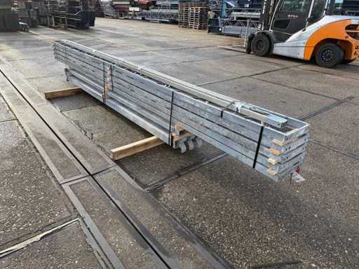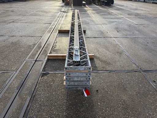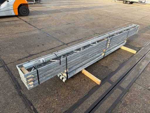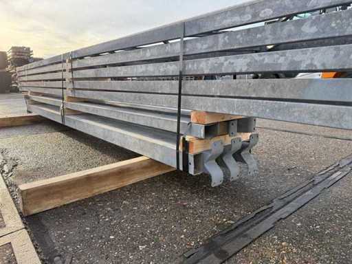 construcție din oțel cu acoperiș plat; deschidere liberă; ferme de casă de 4000mm; constând din 5 seturi de grinzi de rețea cu tuburi ca stâlpi; echipată cu întărituri de vânt și învântuiri transversale; construcția din oțel este ordonat gata de transport și trebuie ridicată cu o singură remorcă; Loturile sunt încărcate gratuit cu un stivuitor