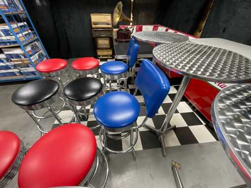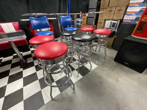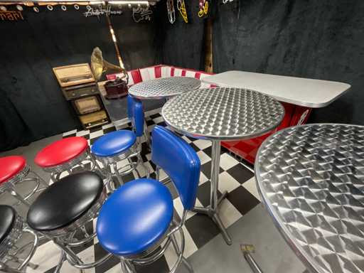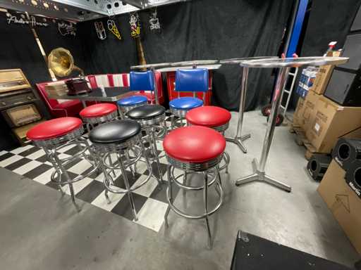 4x masă în picioare din aluminiu, 2x scaun, 6x scaun de bar.