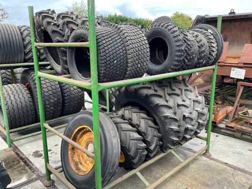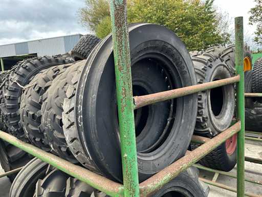 7.50-18 cu jantă, 2x 10-75-15,3, 3x 11,2R24, 2x 6.00-16, 2x 6,5/80-15, 1x AT27x12-12, 2x 25x12.00-9, 1x 5.00-15, 1x 6.50-10, 2x 24x9,50-10, 1x AT25x10-12, 1x 15x6.00-6 și 2x 23x10-12, fără rack
