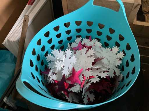 Diverse materiale de Crăciun și decorațiuni, inclusiv decorațiuni de Crăciun și Sfinți. Vă rugăm să rețineți că lotul este situat la etajul 1, nu există lift disponibil.