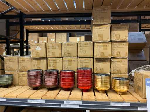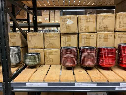 Constând din ghivece de diferite culori și dimensiuni, în 2 secțiuni de rafturi, excluzând bilele metalice.