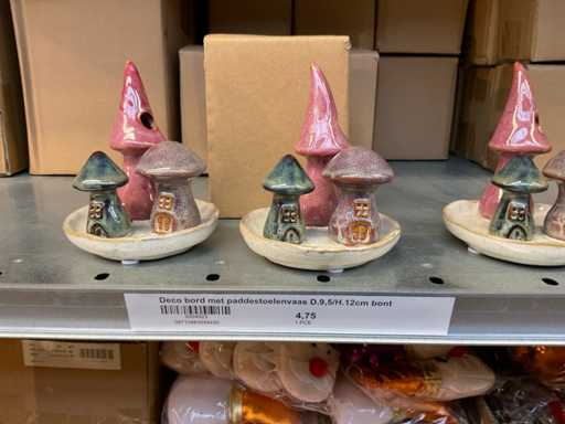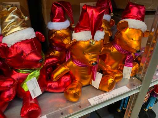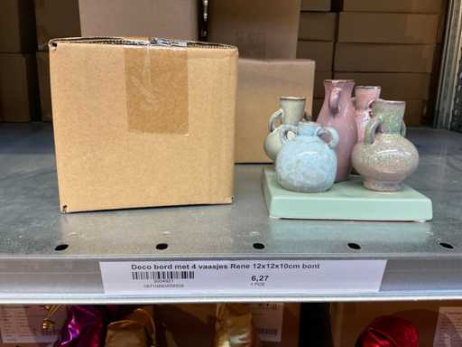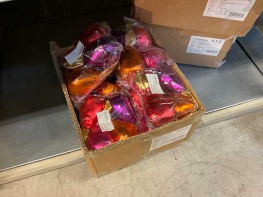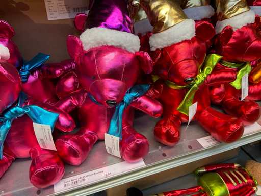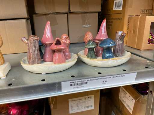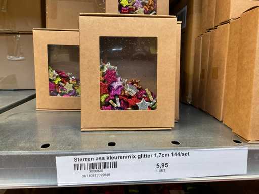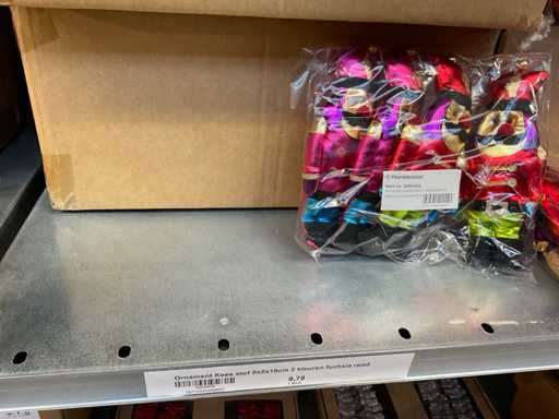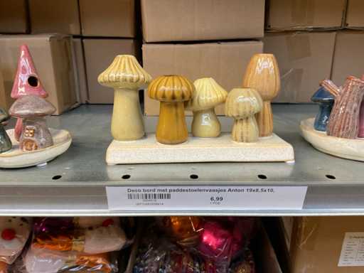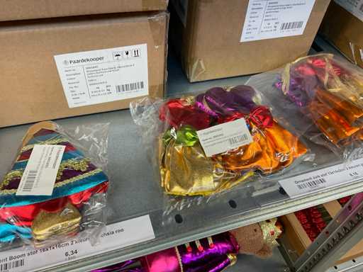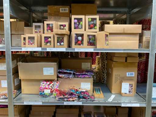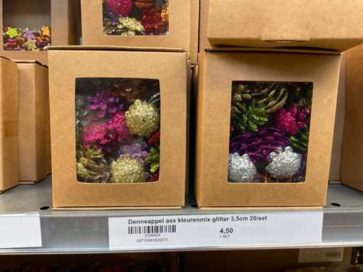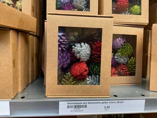 Constând din conuri de pin colorate, ornamente din țesătură în diferite culori, forme și dimensiuni, plăci decorative, toate în 3 secțiuni de rafturi.