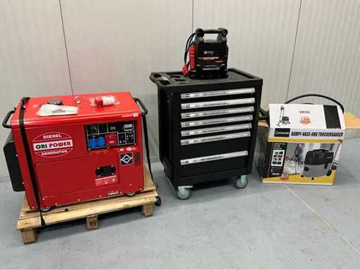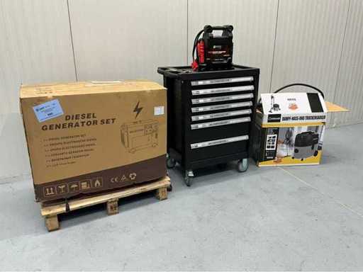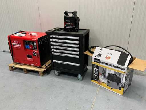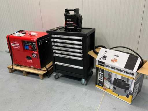 Returnează 4 piese: 1 generator, 1 aspirator, 1 cărucior de scule și 1 booster de pornire. Nu a fost verificată pentru completitudine și funcționare.