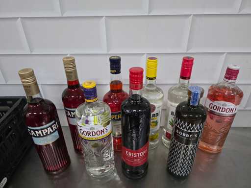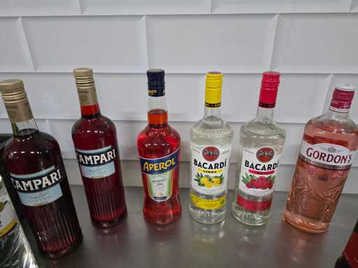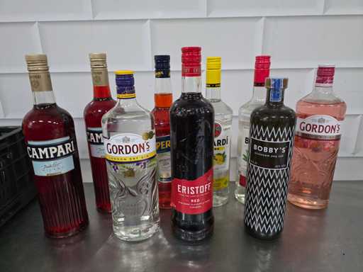 Bacardi, Bobbi's, Campari, etc. Sticlă de băuturi spirtoase (9x)