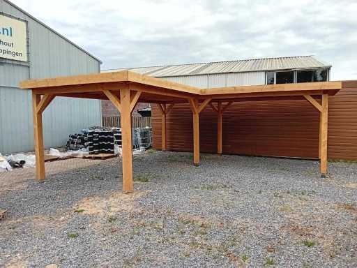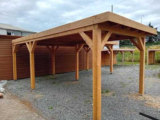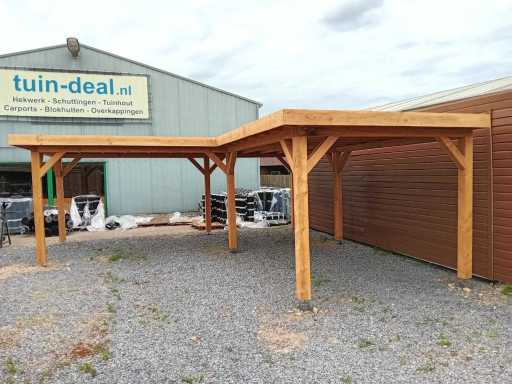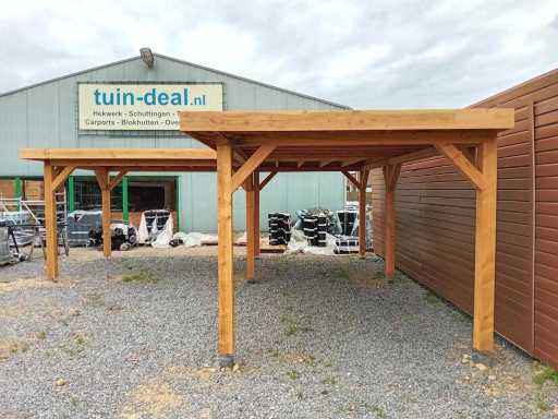 Dimensiuni: Vezi planul etajului în fotografii Mărimea A: 600 cm Dimensiune W: 1000 cm Mărimea C: 400 cm Caracteriza: Baldachinul poate fi plasat într-un colț din stânga sau din dreapta. Material: Stâlpi: 15 × 15 cm, brad Douglas tăiat fin Grinzi acoperiș: 5 × 15 cm, brad Douglas tăiat fin Plăci de acoperiș: 18 mm grosime, brad Douglas rindeluit Livrare: Livrat ca kit care include material de montare și manual Cu excepția pâslelor de acoperiș și a fundațiilor de sol Dimensiuni pachet: 420 × 120 × 150 cm, greutate: 1.300 kg