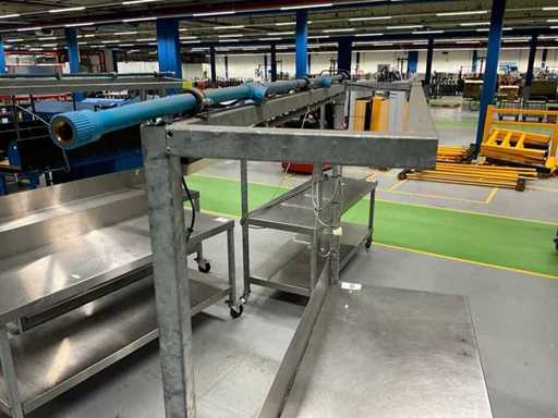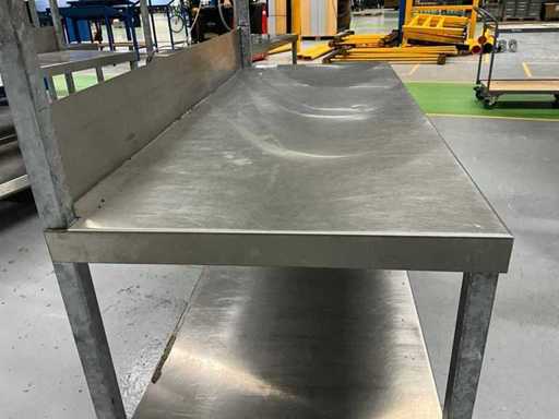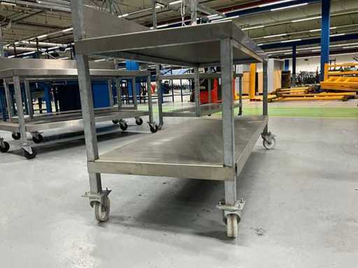 Echipată cu iluminat, blat de lucru acoperit din oțel inoxidabil, roată rotativă 4x, blat de lucru înălțime aprox. 820 mm