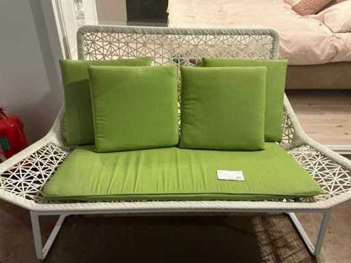 Echipat cu cadru metalic și scaun împletit din PVC cu perne, înălțimea șezului: 45cm