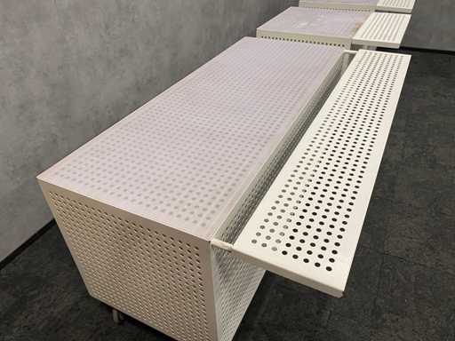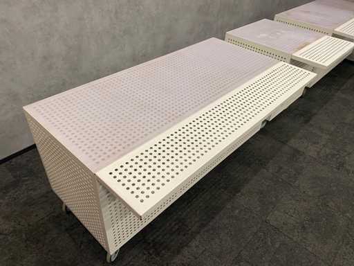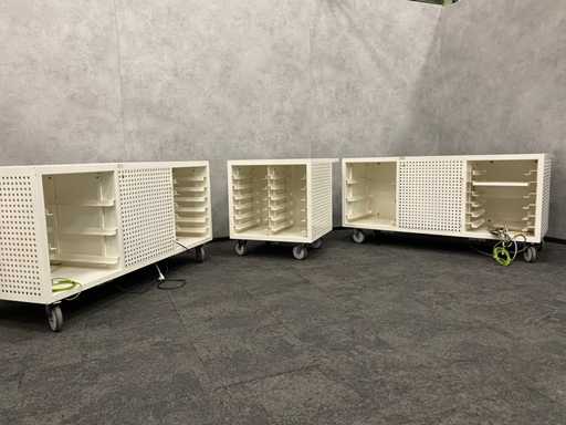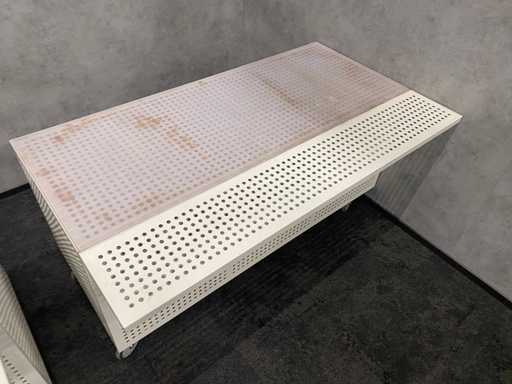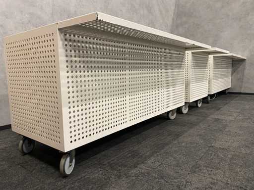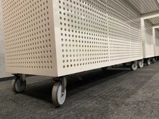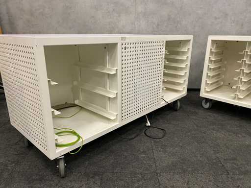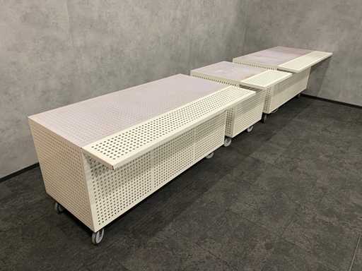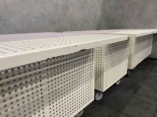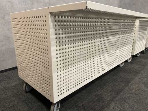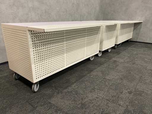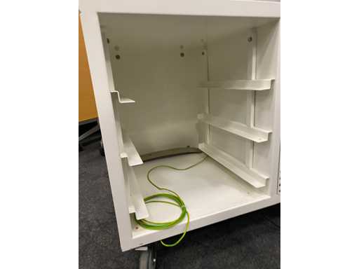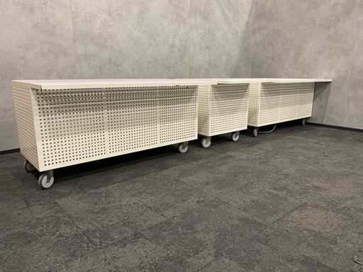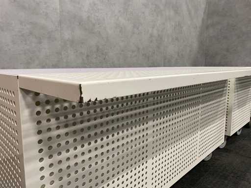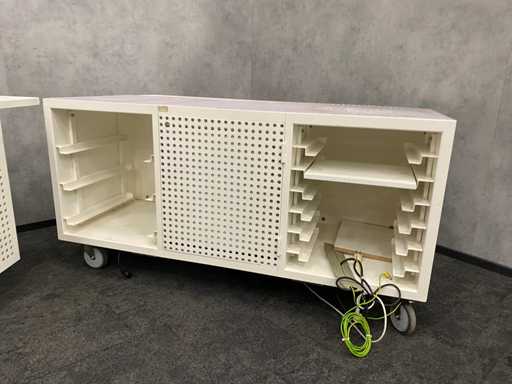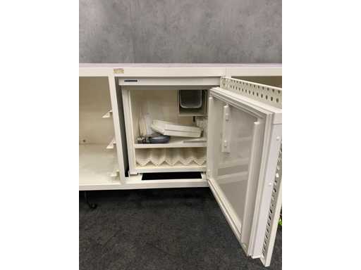 Afm. 2 părți de aproximativ hxwxd 90x180x100 cm. -- 1 parte din aprox. hxwxd 90x80x100 cm. -- cu 2x frigider încorporat