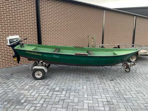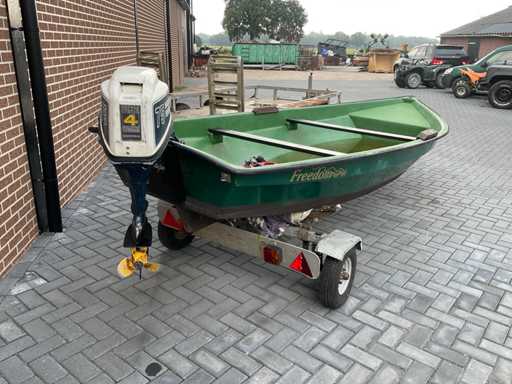 Barcă de turism cu motor exterior în 4 timpi și remorcă