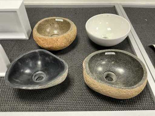 Consisting of 4 countertop washbasins, 3 fountains and 3 drains.