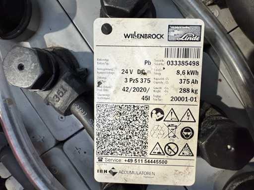 Linde cu servicii complete Baterie: 42/2020 24V/3PzS/375Ah, cu performanțe foarte bune, măsurată la 25,0 volți
