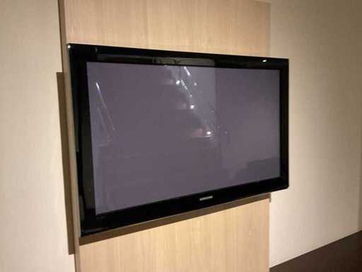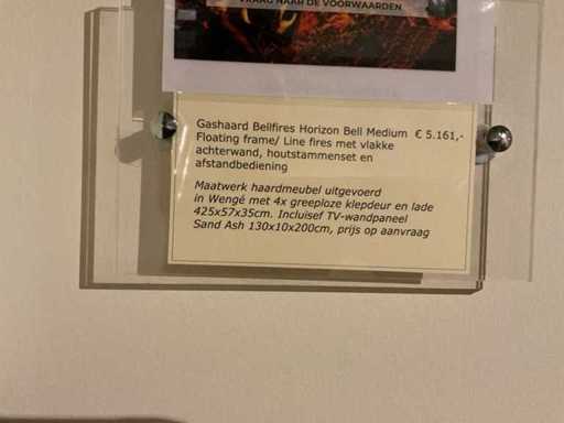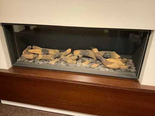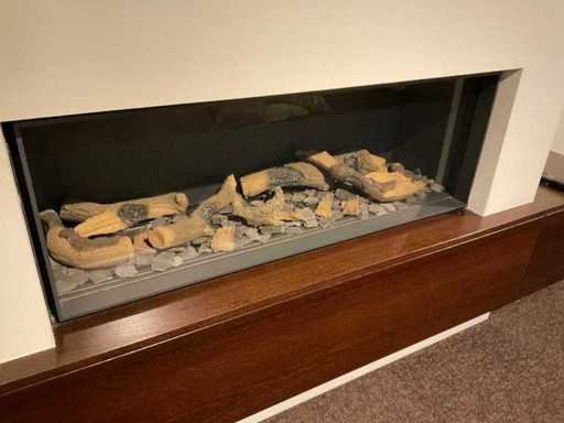 Cu set de bușteni și telecomandă; Dulapuri plutitoare cu furnir; Slab. 425x57x35 cm; cu uși cu clapete; Panou de perete TV; Slab. 102x200x11 cm și televizor Samsung; NOTA: șemineul să fie demontat chiar de cumpărător la fața locului; pereți deja demontați; Lift disponibil