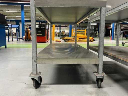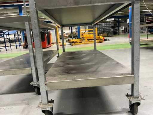 Echipată cu iluminat, blat de lucru acoperit din oțel inoxidabil, roată rotativă 4x, blat de lucru înălțime aprox. 820 mm