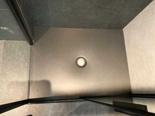 Ușă glisantă din piele de focă, culoare negru perlat. Natura 4000 cu închidere ușoară. Tavă de duș, Bette, din oțel titan. Autosusținător, fără picioare necesare. 3cm înălțime, culoare antracit (403). Posibil să existe și un set separat de drenaj (loturile 276, 277 și 278).