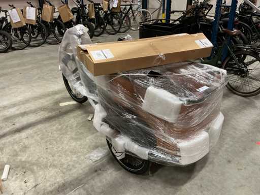 Bicicleta este încă în ambalaj. Încă trebuie asamblat.