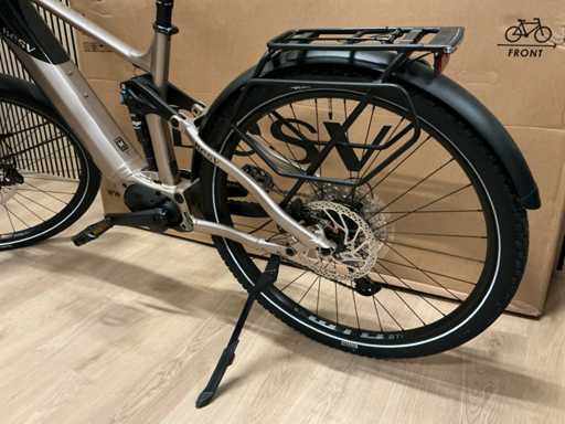 Echipat cu: cadru complet suspensivă din aluminiu seria BESV TRS, compatibil cu Shimano Steps și baterie internă, titan metalic color cu negru de noapte, mărime bărbat: S (42,5 cm), SR Suntour Zeron35, picioare de furcă de 35 mm, blocare, amortizare cu aer, direcție conică din aluminiu de 1,1/8"-1,8", curse de 150 mm. amortizor spate SR Suntour Edge LOR8, 230x65, arc pneumatic, suport tubular din aluminiu, cu platformă Snap-IT și clemă cu arc, montaj pentru lumină spate H-Cargo, apărători de noroi din aluminiu extrudat, lungime față și spate de 3/4, feronerie de montare din oțel inoxidabil, motor central Shimano EP600, putere nominală de 250 W, cuplu 85 Nm, asistență maximă de 25 km/h, baterie integrată litiu-ion de 720 Wh, aprobată pentru programul de service Shimano, cu încărcător Smart 4-5.6A, Shimano SC-E5003, montată pe stânga, cu ecran LCD, Shimano Deore XT RD-M8100, 12 trepte, Shimano Deore CS-M6100, 12 trepte, 10-51T, KMC e12Turbo, cu Quick-Link, Samox pentru Shimano Steps, cont 34T cu protecție pentru inel, Shimano MT420, frână hidraulică cu 4 pistoane, cu discuri de frână față și spate de 203 mm, Shimano MT4100, manetă cu 2 degete, bară de deplasare E-MTB, aliaj 6066, înălțime de 15 mm, înclinare: 7 grade spate, Clemă de 35mm, tijă E-MTB 3D forjată din aluminiu, clemă de 35mm pentru rutarea internă a cablului, Acros, AZX-581, căști de 1,8", rulmenți de contact unghiular, rulare integrată pentru cablu, mânere gel E-MTB cu căptușeală și clemă BESV.