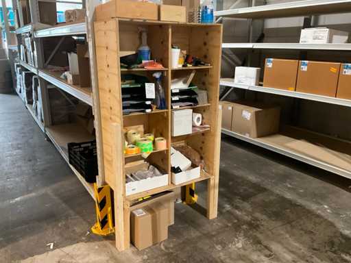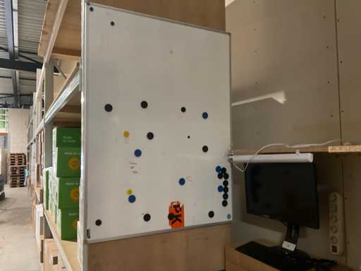Contorul este pe palet, inclusiv palet, monitor Ilyama, tastatură mouse, imprimantă de etichete Dymo, tip, LabelWriter 450, scaner de coduri de bare Zebra și dulap cu materiale de ambalare.
