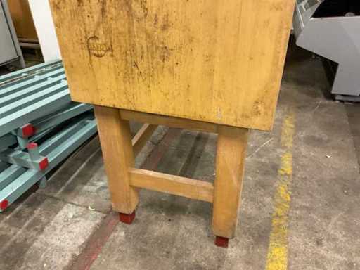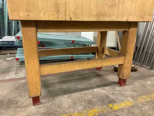 Un bloc solid de tăiat pentru carne. Blok stă accidental cu capul în jos pe piedestal. Poate fi pur și simplu inversat, blocul are 350mm grosime