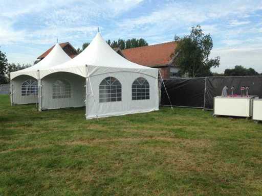 Cort complet: Cadru tubular, prelată pe acoperiș, 4 pereți laterali, curele de tensiune