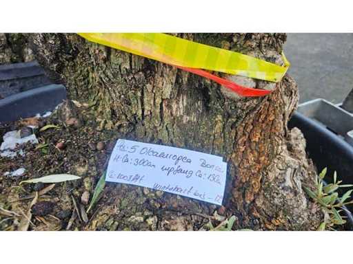 Adu o notă mediteraneană în grădina ta cu acest impresionant bonsai de măslin, vechi de aproximativ 100 de ani. Acest exemplar magnific impresionează prin trunchiul său masiv, noduros, cu o circumferință de aproximativ 130 cm și prin obiceiul său de creștere caracteristic. O piesă cu adevărat unică, care s-a maturizat de-a lungul decadelor și adaugă o notă exclusivă și atemporală oricărui spațiu exterior. Copacul este robust și rezistent până la aproximativ -12°