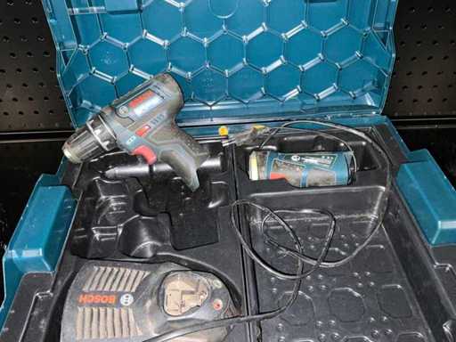 Blue Bosch Battery screwdriver GSR 12 V-15 with battery lamp and charger in L-boxx