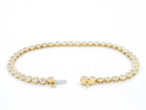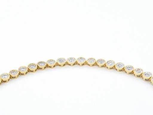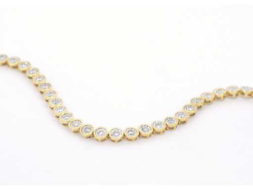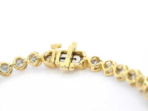 diamante montată Diamant: Natural; Cantitate: 43 piese; Tăietură: Tăietură genială; Greutate (carate): 1,60 carate; Culoare: F-G; Puritate: SI-P; Bijuterie: Brățară; Greutate: 7,50 grame; Dimensiuni/lungime: 18 cm; Material: 14 carate (585); Starea: Nouă; Ambalare: Cutie de bijuterii de lux; Explicație: Calitatea a fost preluată din raportul aferent produsului. Evaluarea este o evaluare a unui comerciant certificat de diamante, bazată pe prețurile pentru consumatori; Preț pentru consumatori: 7.000 €