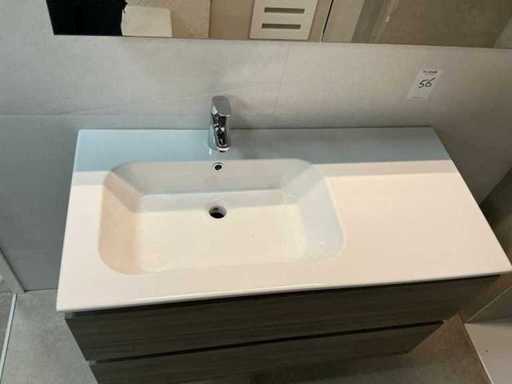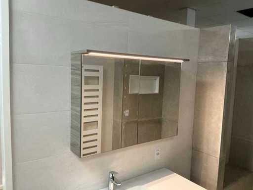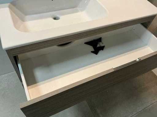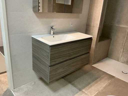 Consisting of a washbasin with base cabinet 105x51x63cm, mirror cabinet with LED lighting 100x72x18cm and Hansgröhe Focus washbasin mixer.